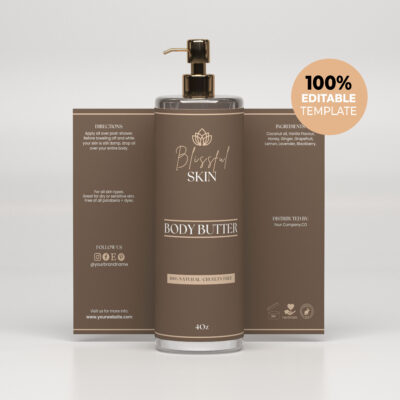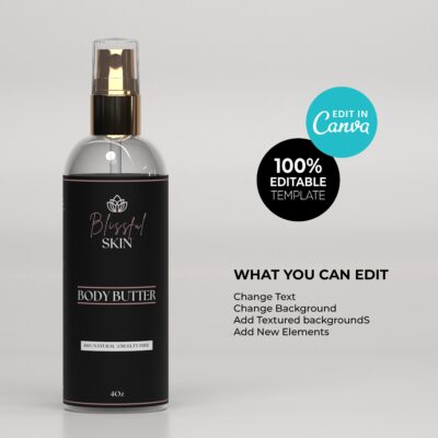 DIY Modern Bliss Editable Product Label Template Collection for Body Butter, Hair Oil, Shampoo, Dropper Bottles, Jars, Cosmetic labels, etc