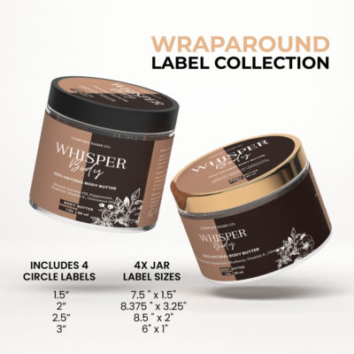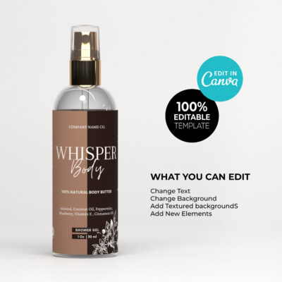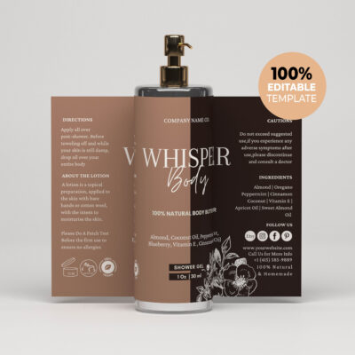DIY Whisper Body Editable Product Label Template Collection for Body Butter, Hair Oil, Shampoo, Dropper Bottles, Jars, Cosmetic labels, etc